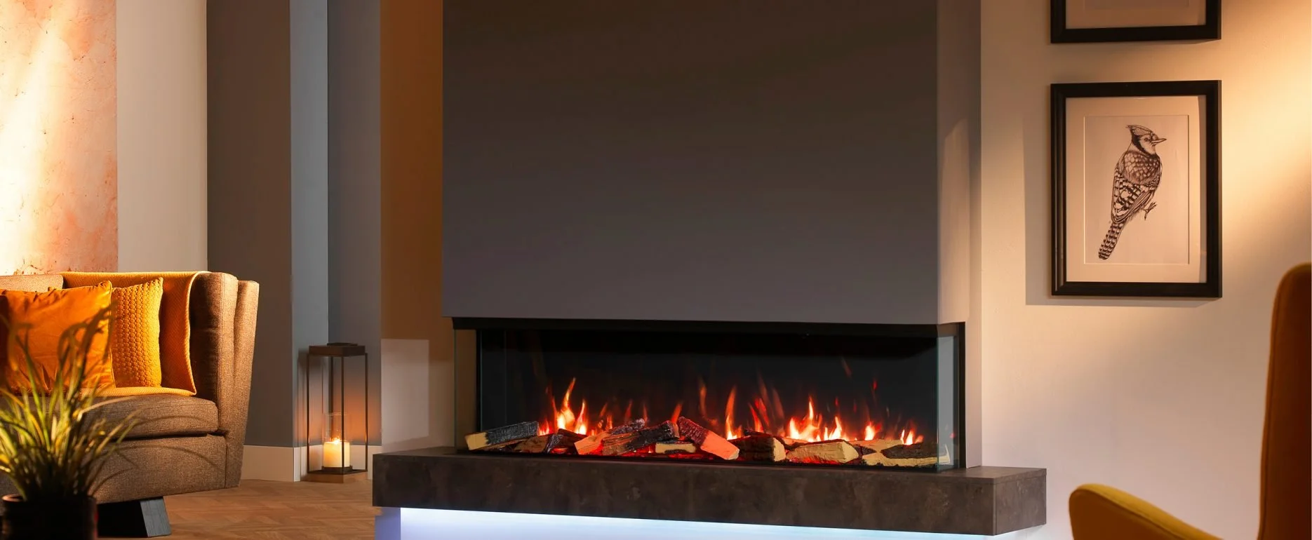 Solus Electric fires are a contemporary range of electric fires. They offer a far superior flame pattern with the option to alter the colours on both the bed and back flame of the fire. It even has a realistic crackling sound effect!